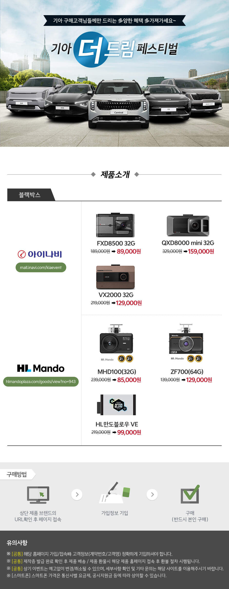 기아 차량 구매 고객을 대상으로 다양한 블랙박스를 할인된 가격으로 제공합니다.