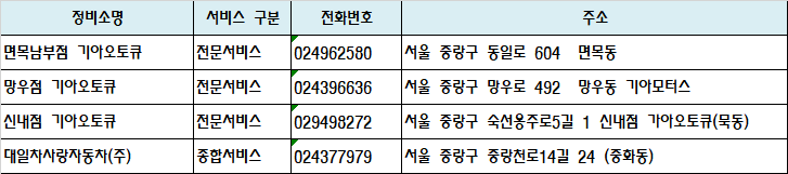 기아 정비 센터 - 서울 중랑구