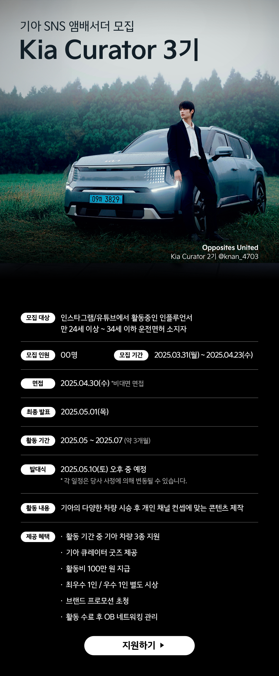 기아 SNS 앰배서더 모집: Kia Curator 3기