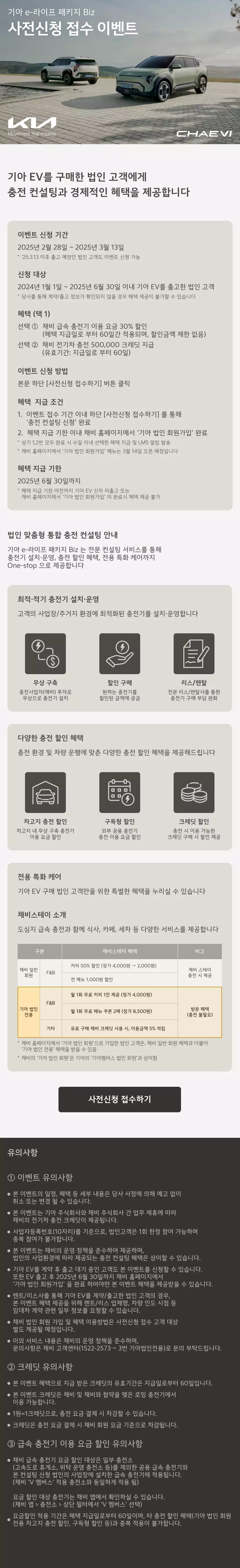 - 채비 홈페이지에서 '기아 법인 회원가입' 완료 (2025년 3월 14일부터 가입 가능)