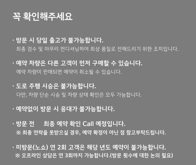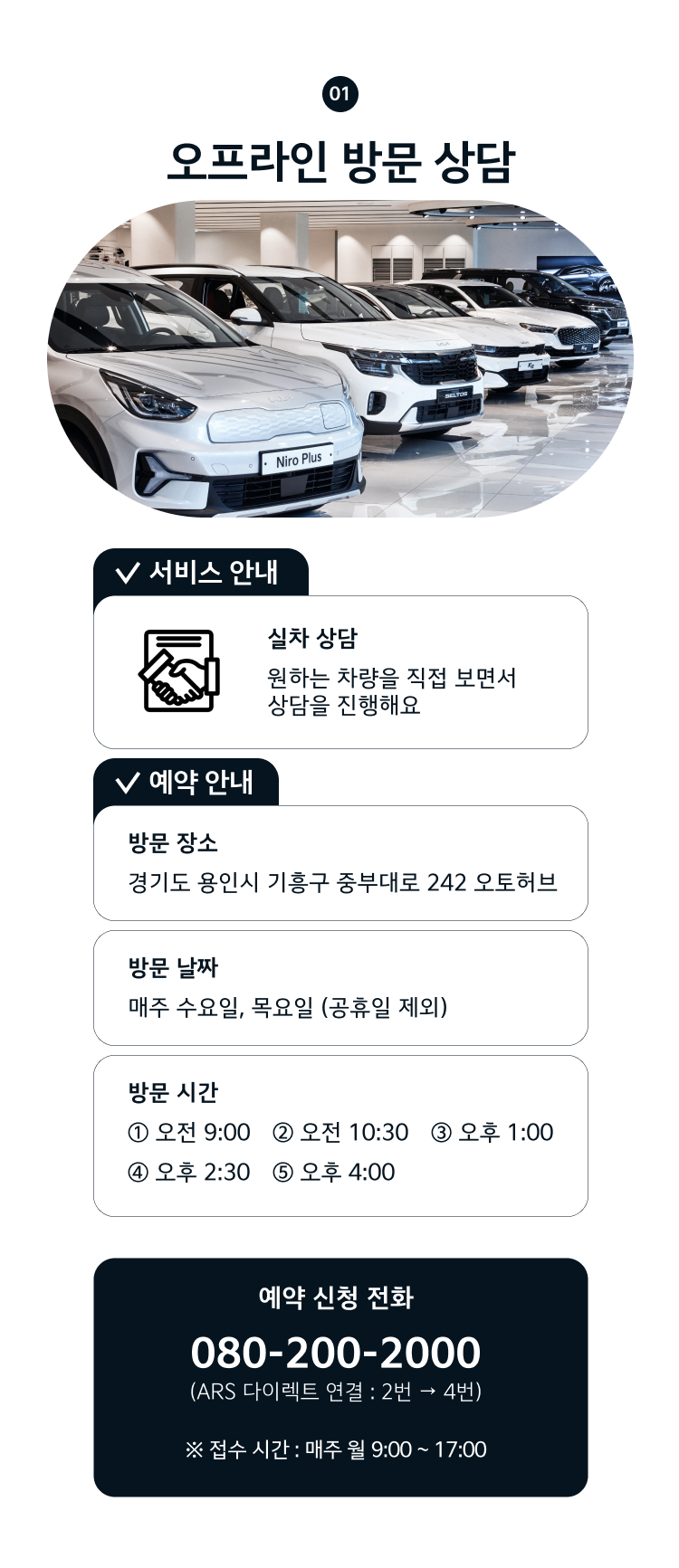 실차를 직접 보고 상담을 원하시면, 아래 예약 안내를 참고해 주세요.