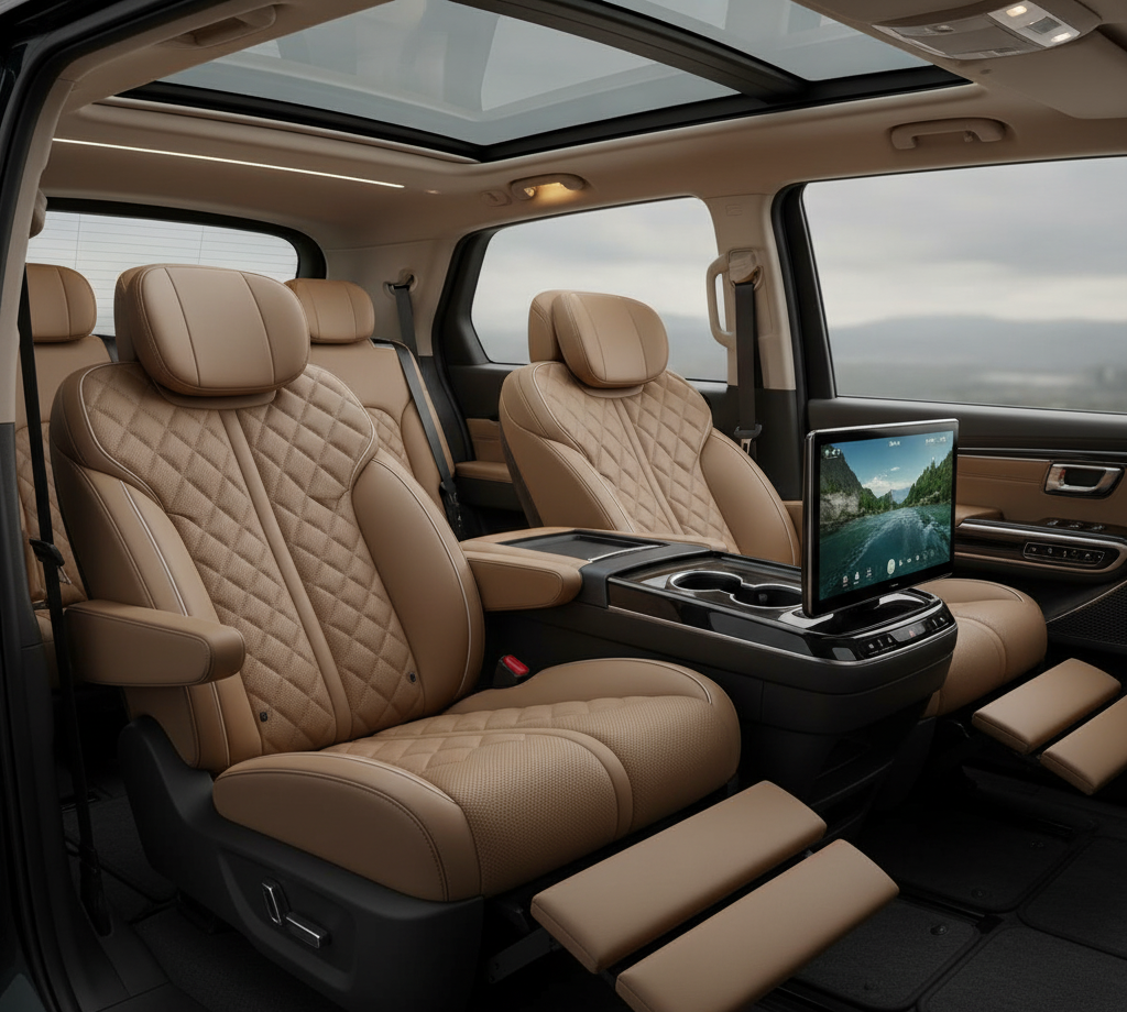 카니발 7인승 모델은 2열 공간의 가치를 극대화한 것이 특징이에요. 7인승의 핵심은 2열에 적용되는 '프리미엄 릴렉션 시트'인데요. 원터치 조작으로 무중력에 가까운 편안한 자세를 만들어주어, 항공기 비즈니스 클래스에 버금가는 안락함을 제공하죠. 3열 시트는 바닥으로 완전히 수납되어, 사용하지 않을 때는 광활하고 평탄한 적재 공간을 확보할 수 있습니다. 4~5인 이하의 가족이 최상의 편안함을 누리며 장거리 여행을 즐기거나, 기업의 비즈니스 의전용 차량으로 활용하기에 가장 적합한 선택이 될 거예요.