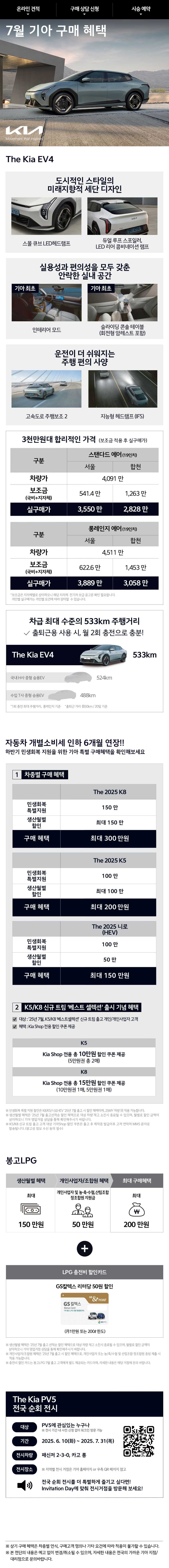 - EV 페스타: 니로 EV, EV6, 봉고 등과 함께 최대 350만원 현금 할인 (EV4는 생애 첫 전기차 구매 혜택 등 적용)