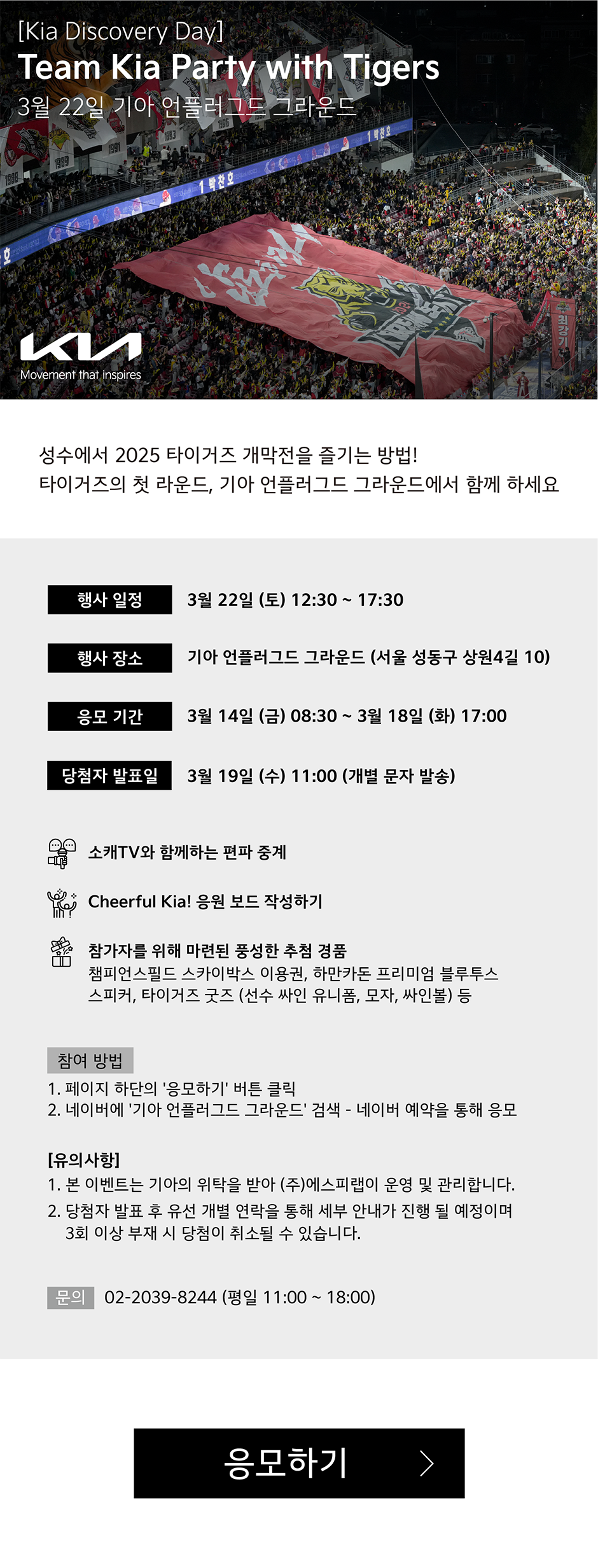 - 내용: KIA 타이거즈 2025 시즌 개막전 단체 관람 및 다양한 이벤트