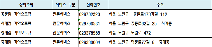 기아 정비 센터 - 서울 노원구