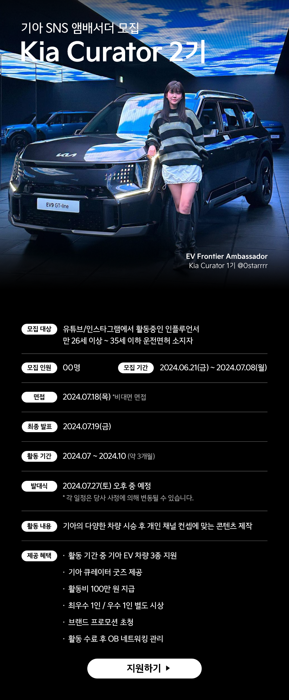 안녕하세요 기아 SNS 앰배서더 Kia Curator 2기에 지원해주셔서 감사합니다.