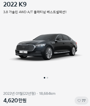 고급스러운 사양과 뛰어난 성능을 갖춘 K9은 프리미엄 차량을 선호하는 소비자들 사이에서 큰 찜 횟수를 기록하고 있습니다.