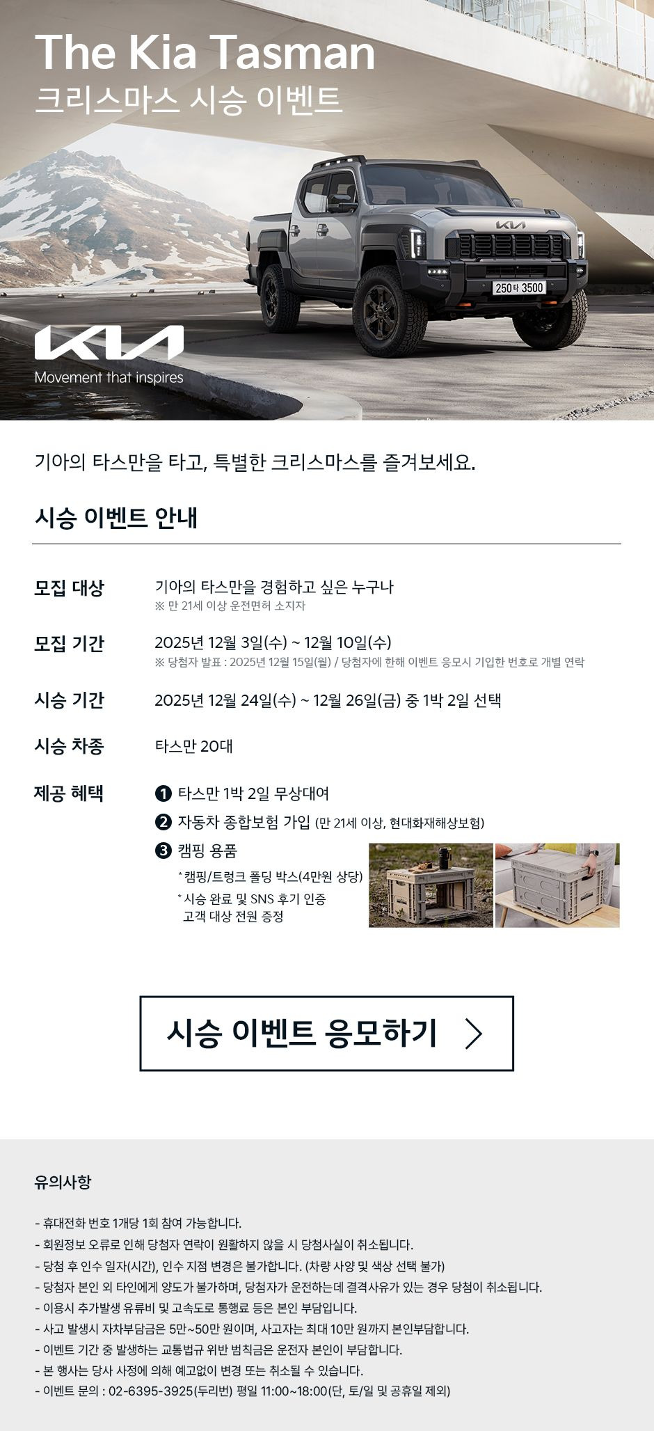 2025 크리스마스 데이트 추천 기아 타스만 무료 렌트 및 캠핑 용품 받는 꿀팁
